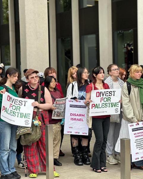 Kingston University students walked out of classes to protest the institution’s complicity in the ongoing genocide in Gaza, occupied Palestine.